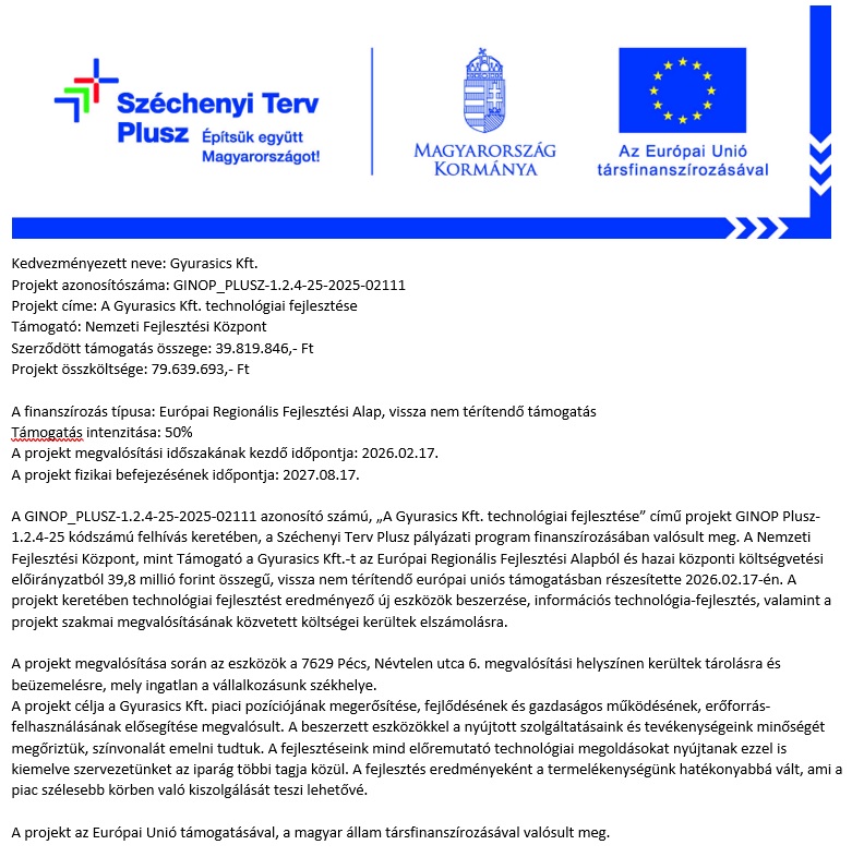 „Gyurasics Kft. versenyképességének növelése adaptív technológiai innováció révén"